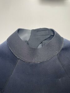 Ce sont les coutures qui maintiennent les différentes parties de la combinaison. Elles peuvent facilement se déchirer. Même si les parties restent assemblées par le collage, la combinaison est toujours sollicitée sur l’ensemble et plus particulièrement encore sur les assemblages. Aussi, il est important de pouvoir reprendre rapidement une couture démolie avant que le point de chainette ne continue à se dégrader. La machine utilisée permet une couture en surface que l’on appelle point invisible; il empêche le va et vient de l’eau dans la combinaison.